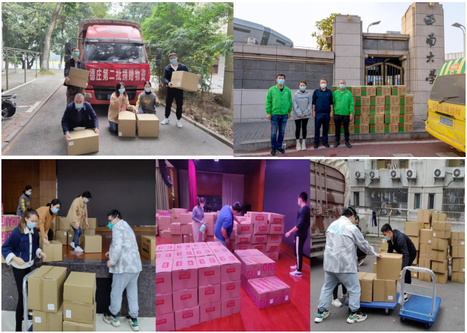 为助力学校疫情防控工作,重庆威廉希尔williamhill官网教育基金会迅速行动起来,广泛联络广大校友等社会爱心人士和企业,将社会公益捐赠汇聚成抗疫“暖流”,凝集慈善爱心为学校战“疫”工作添砖加瓦。截至目前,基金会联合食品科学学院共同募集价值15万余元抗疫生活物资,并联合相关单位对物资进行转运、消杀和分发。