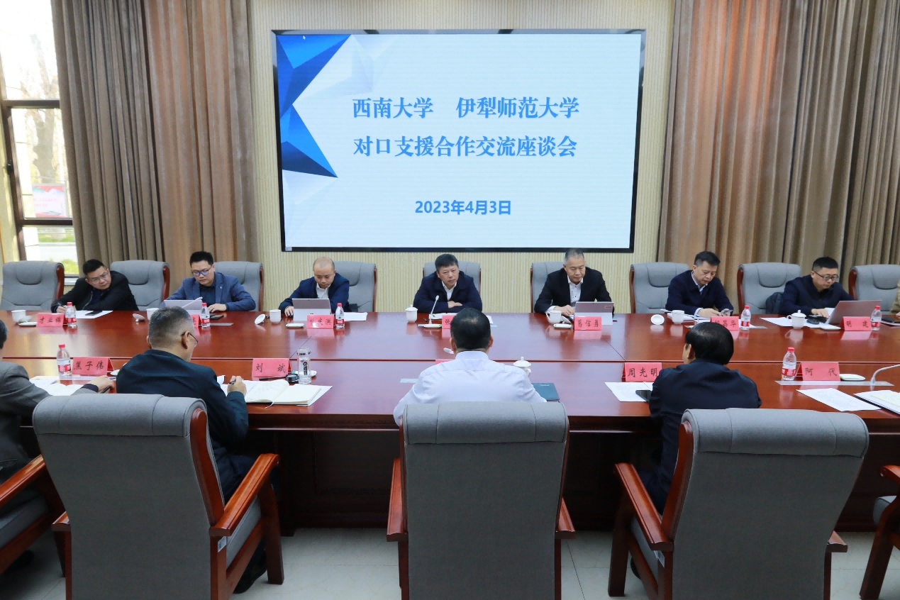 4月3日上午,学校对口支援伊犁师范大学合作交流座谈会在伊犁师范大学举行。学校校长张卫国、副校长葛信勇,伊犁师范大学党委书记蒋海军、党委副书记刘斌、副校长周光明(挂职)出席座谈会。两校相关职能部门和学院负责人参加会议。