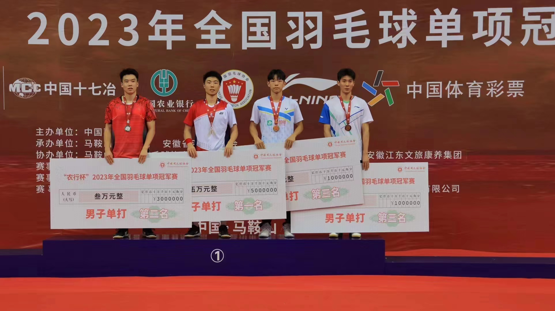 在7月份的全国羽毛球单项冠军赛中,学校2022级运动训练专业学生李昀泽、2020级运动训练专业学生曾逸凡包揽含金量极高的男单冠亚军,2020级运动训练专业学生戴望获得女单季军,2022级运动训练专业学生庄怡获得女单第5名,2023级研究生乔诗峻获得女双第5名。